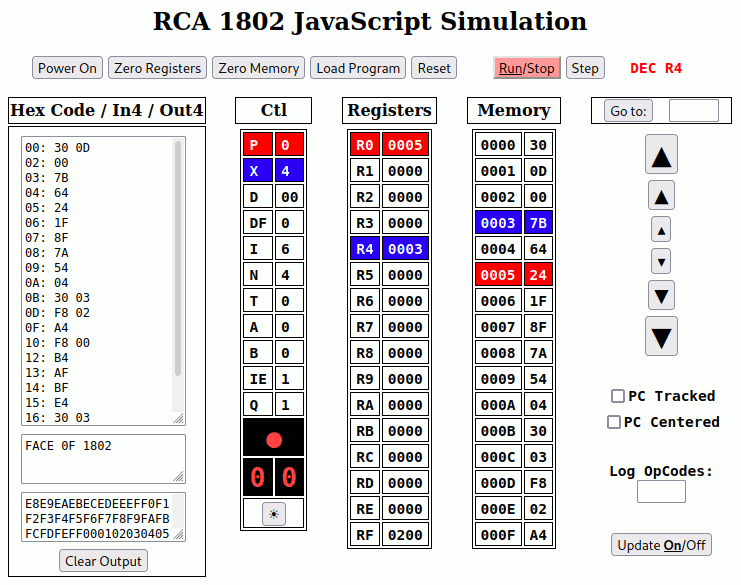 Simulated RCA 1802 Microprocessor demonstrated at September 9, 2021 Meeting: