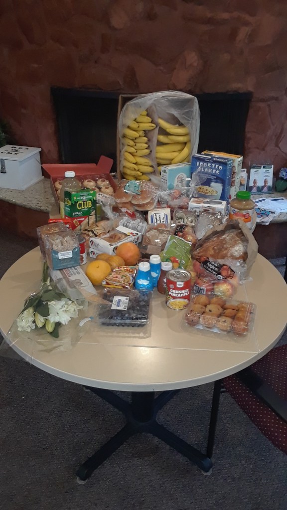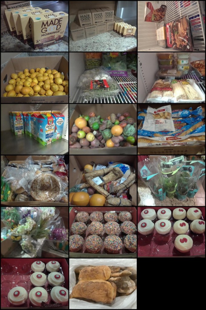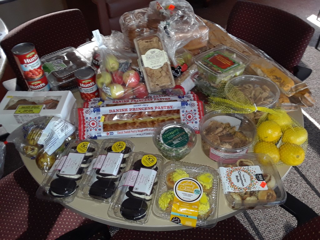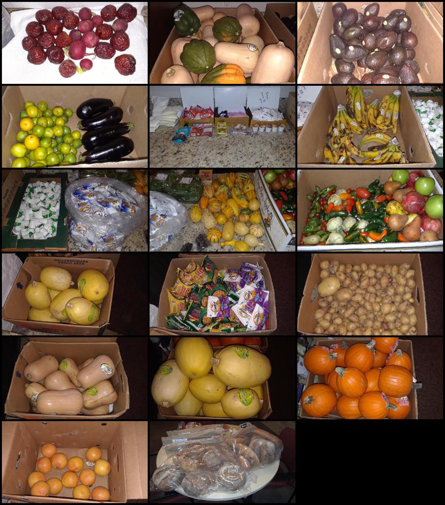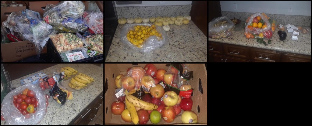 We got a call to pick up our third food delivery and sent an email to everyone in the Resident’s Association list. The email requested a text message for anyone wanting food. Then we picked up the food and drove it back for final delivery. Everyone who requested it got a delivery. We also passed some out at both of our parks. This delivery was a nice mix with a lot of beautiful pumpkin pies. Here’s a sample: