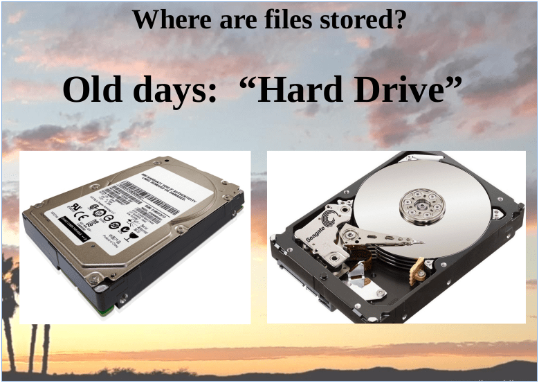 In addition to the “regular” file system, there are a number of remote file systems available over the Internet. These can be confusing and deceptive as described in this article about “OneDrive”: