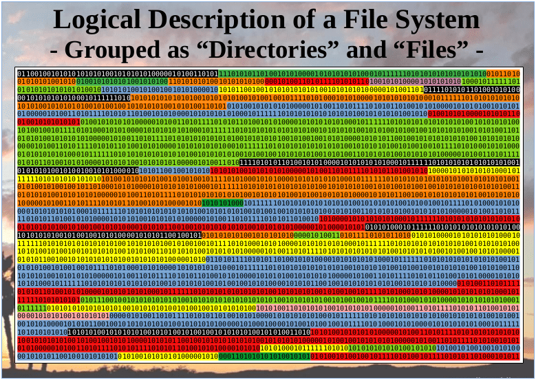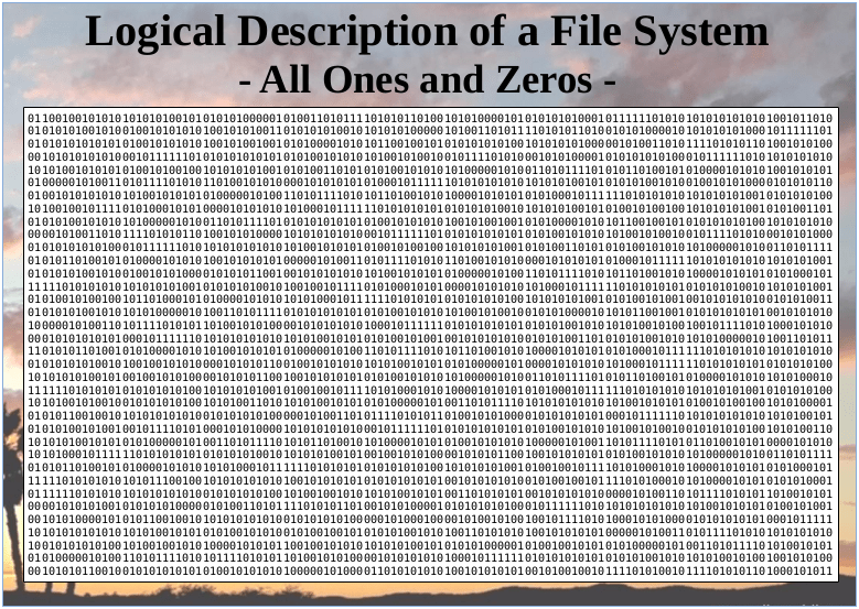 But regardless of how the bits are physically stored, we can still view entire file system (“hard drive”) as a long series of 1’s and 0’s.