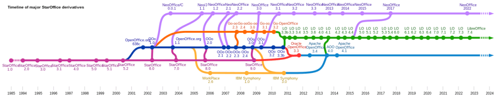 “Libre Office” is a more recently updated branch of “Open Office” which was a more recently updated branch of “Star Office”. A number of other branches from the original “Star Office” have existed. This picture shows a number of those branches.